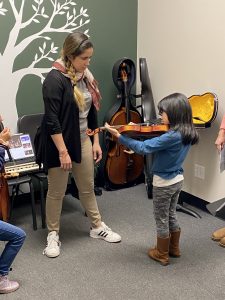 Our teachers ran an “Instrument Petting Zoo”, where current and potential students had the chance to try out piano, voice, guitar, ukulele, violin and cello. Those who completed the petting zoo were entered into hourly prize drawings, and we had many winners who went home with gift certificates to local businesses!